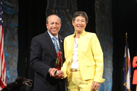 Mayor John Suthers presented the Spirit of the Springs Lifetime Achievement Award to Lyda Hill after his State of the City address on Thursday, Sept. 8, 2022.
