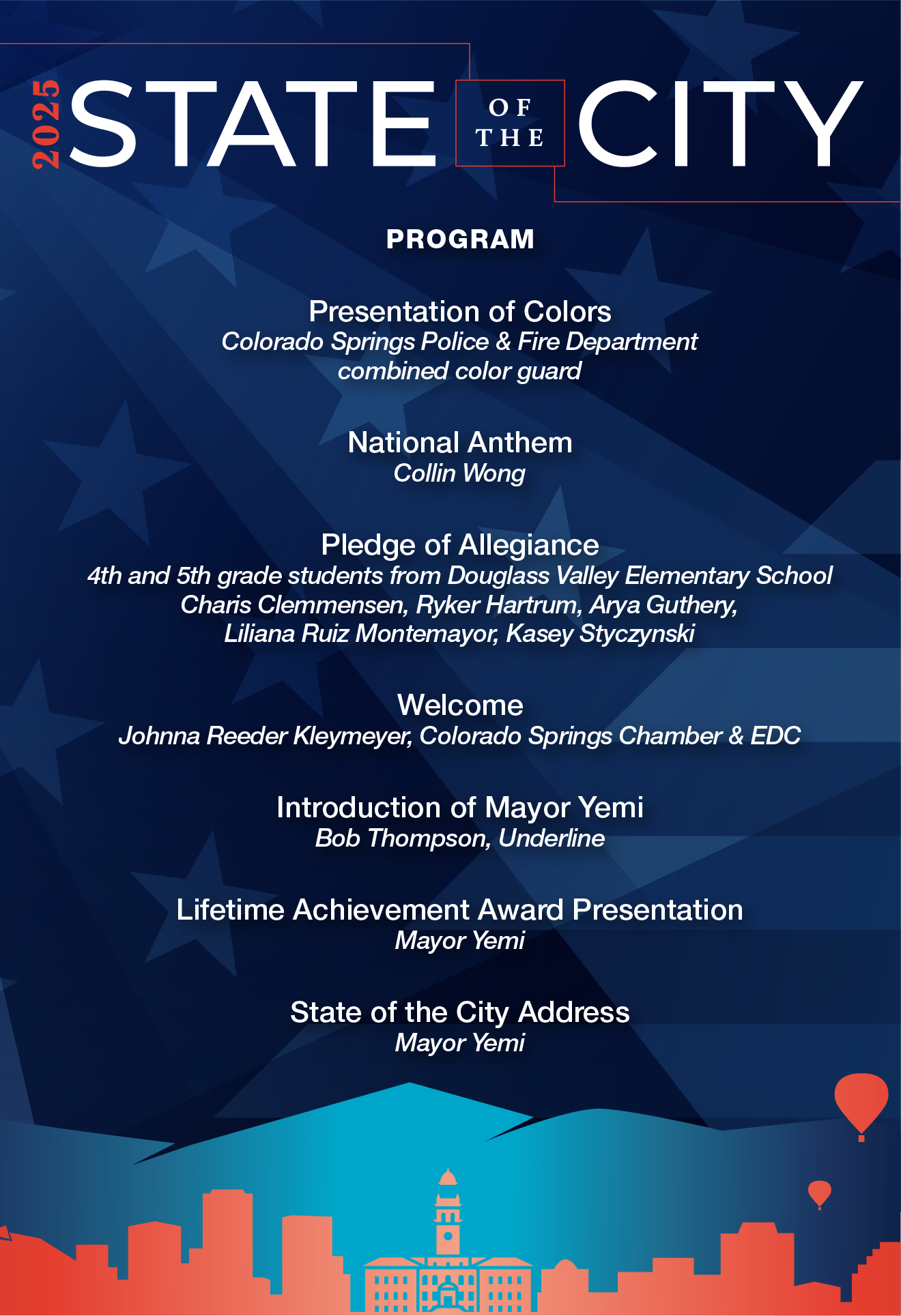 In his speech, Mayor Yemi will reflect on the significant accomplishments achieved over the past year and outline his strategic plan to address the challenges that lie ahead as he approaches the midpoint of his term as the 42nd Mayor of Colorado Springs. In addition to this "halftime report," the event will honor the recipient of the Mayor’s 2025 Spirit of Colorado Springs Lifetime Achievement Award.