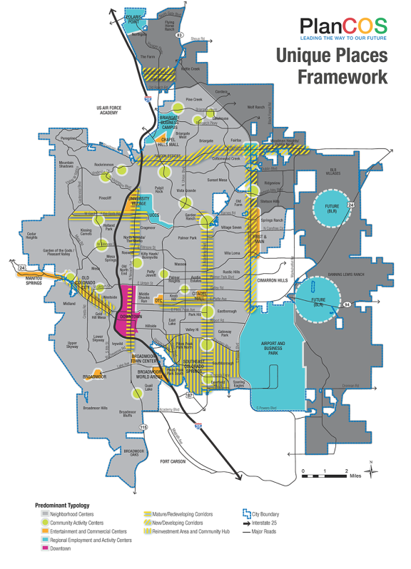 The Unique Places Framework Map provides a graphic framework for our vision of Unique Places. This map depicts only a selection of major or representative activity centers for highlighting or focus. It is intended to be used as one means of furthering the City’s focus on designing places to be compatible with, accessible from, and serve as a benefit to the surrounding neighborhoods or business areas. This map is expected to be a living and evolving graphic. It is not intended to strictly define place boundaries.