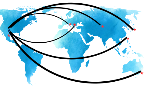 A map of the world, with lines connecting the location of Colorado Springs with all of the Colorado Springs Sister Cities.
